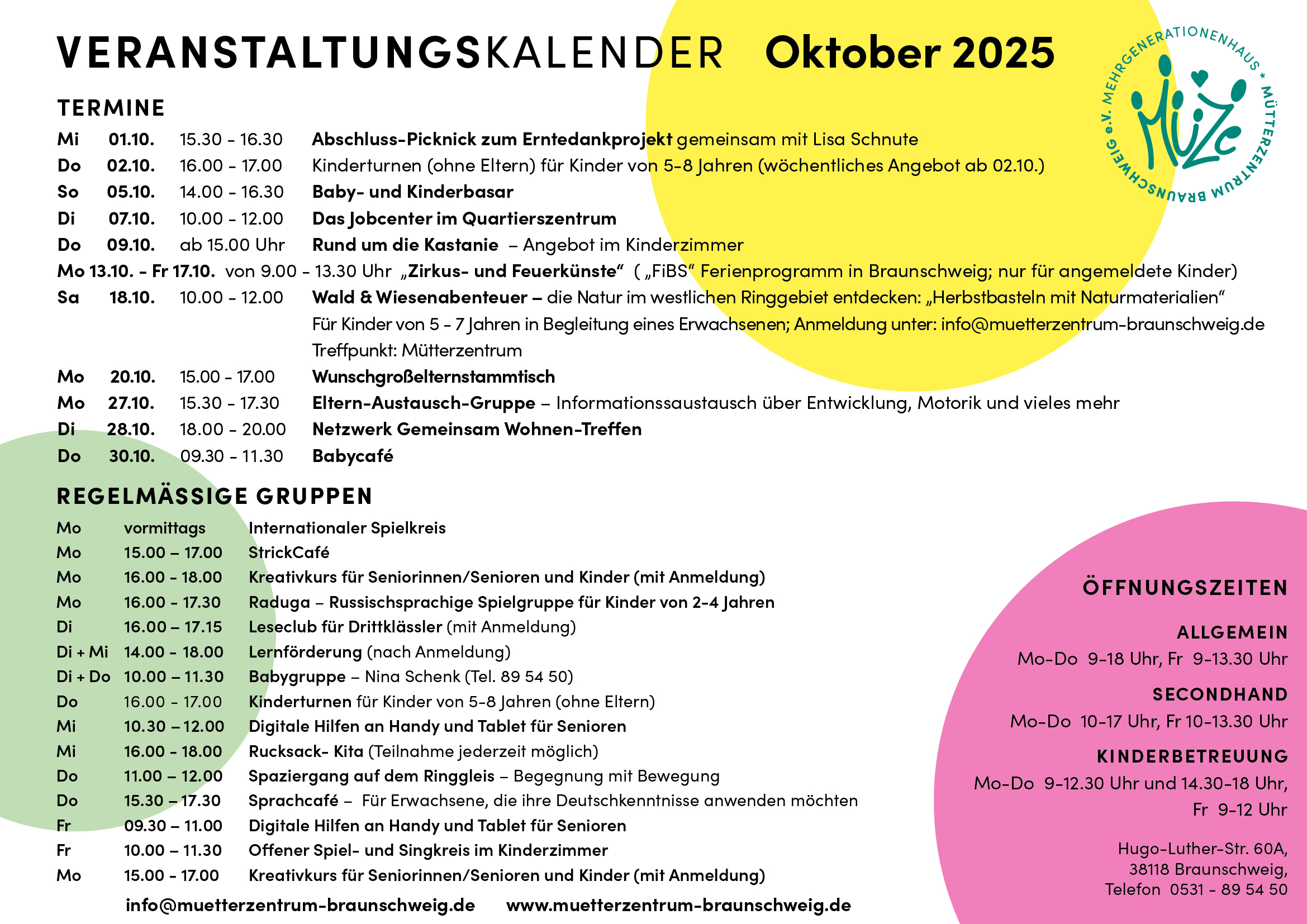 In unserem monatlich erscheinenden Veranstaltungskalender informieren wir sowohl über unsere besonderen als auch über unsere regelmäßigen Veranstaltungen.