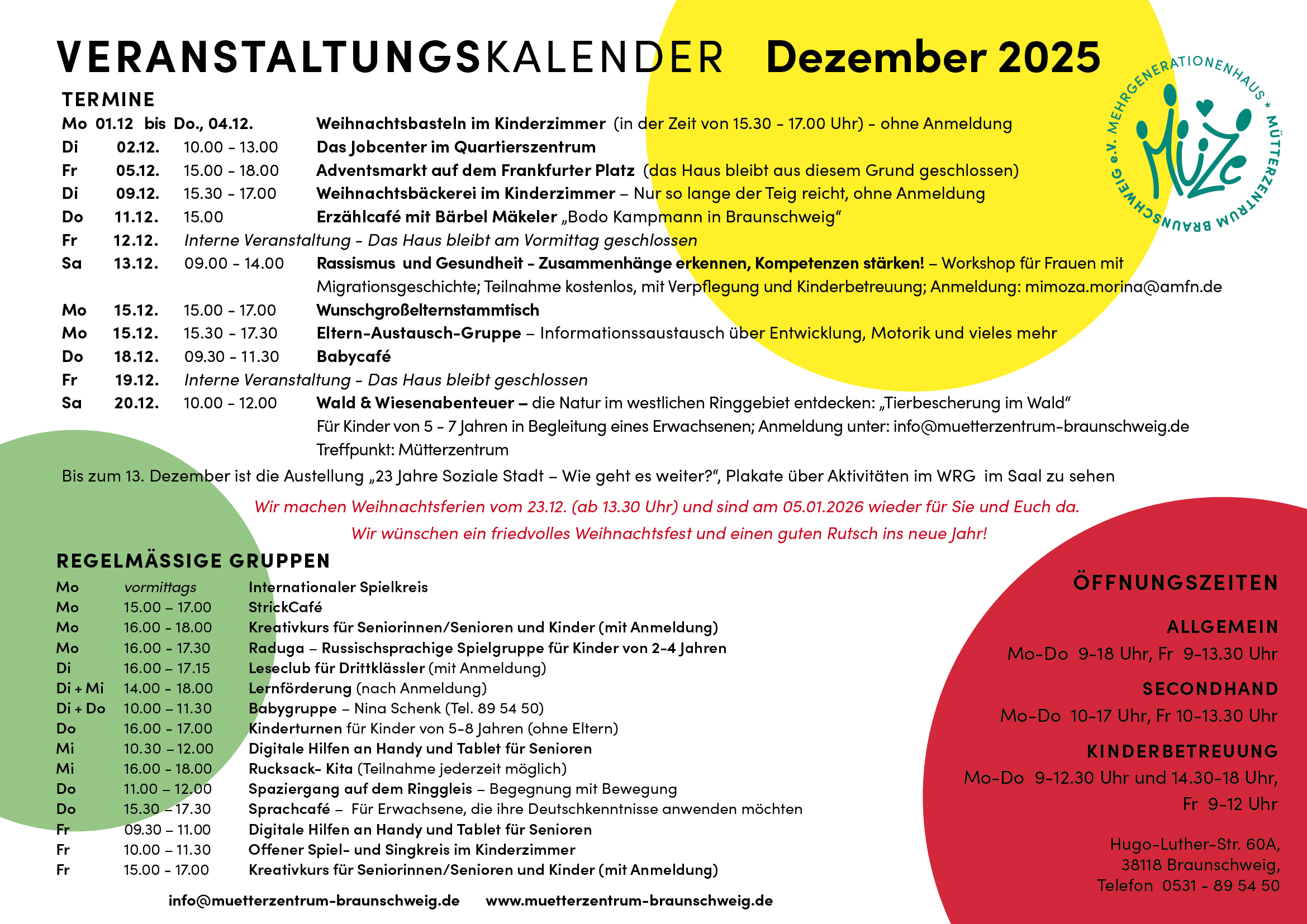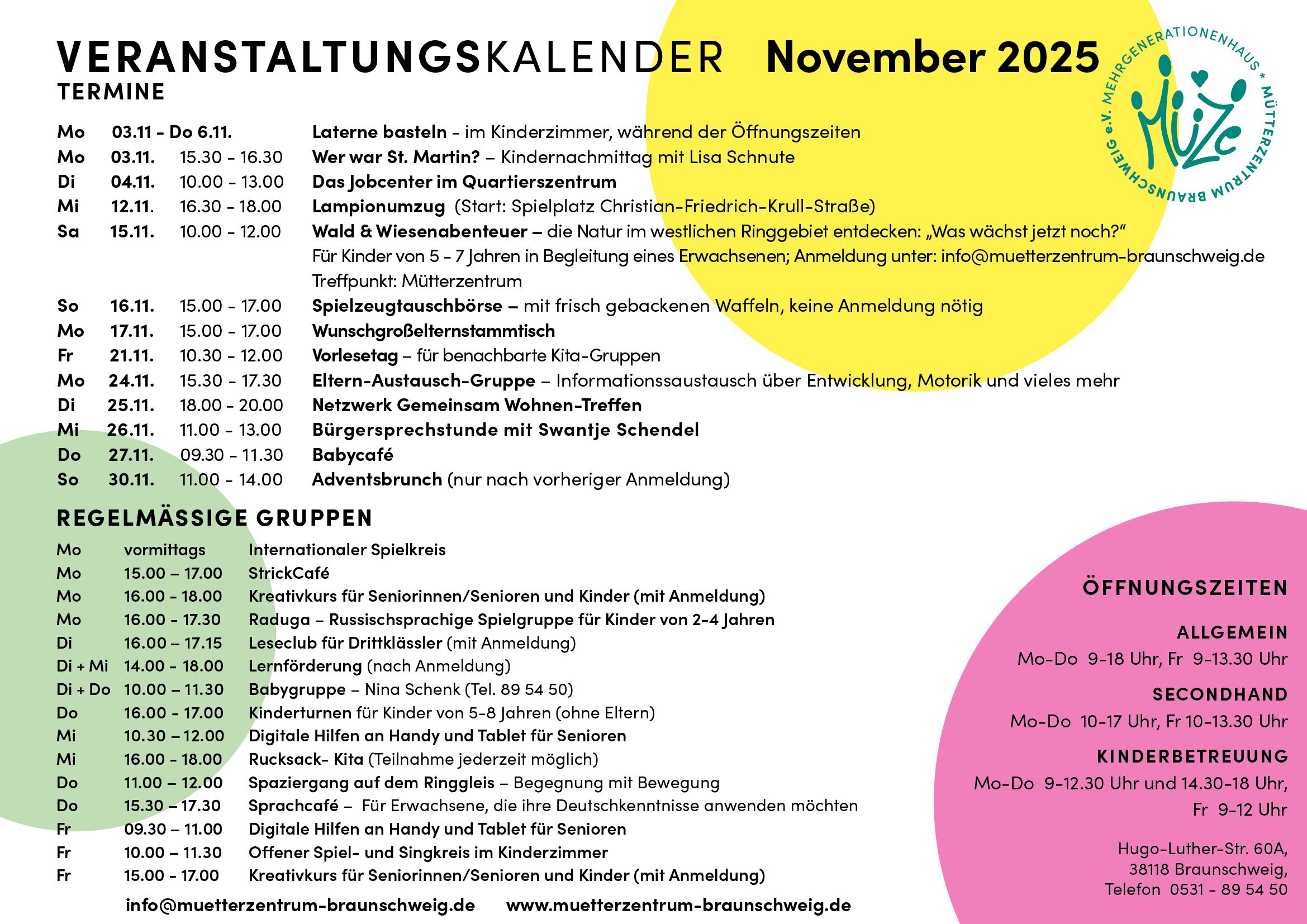In unserem monatlich erscheinenden Veranstaltungskalender informieren wir sowohl über unsere besonderen als auch über unsere regelmäßigen Veranstaltungen.